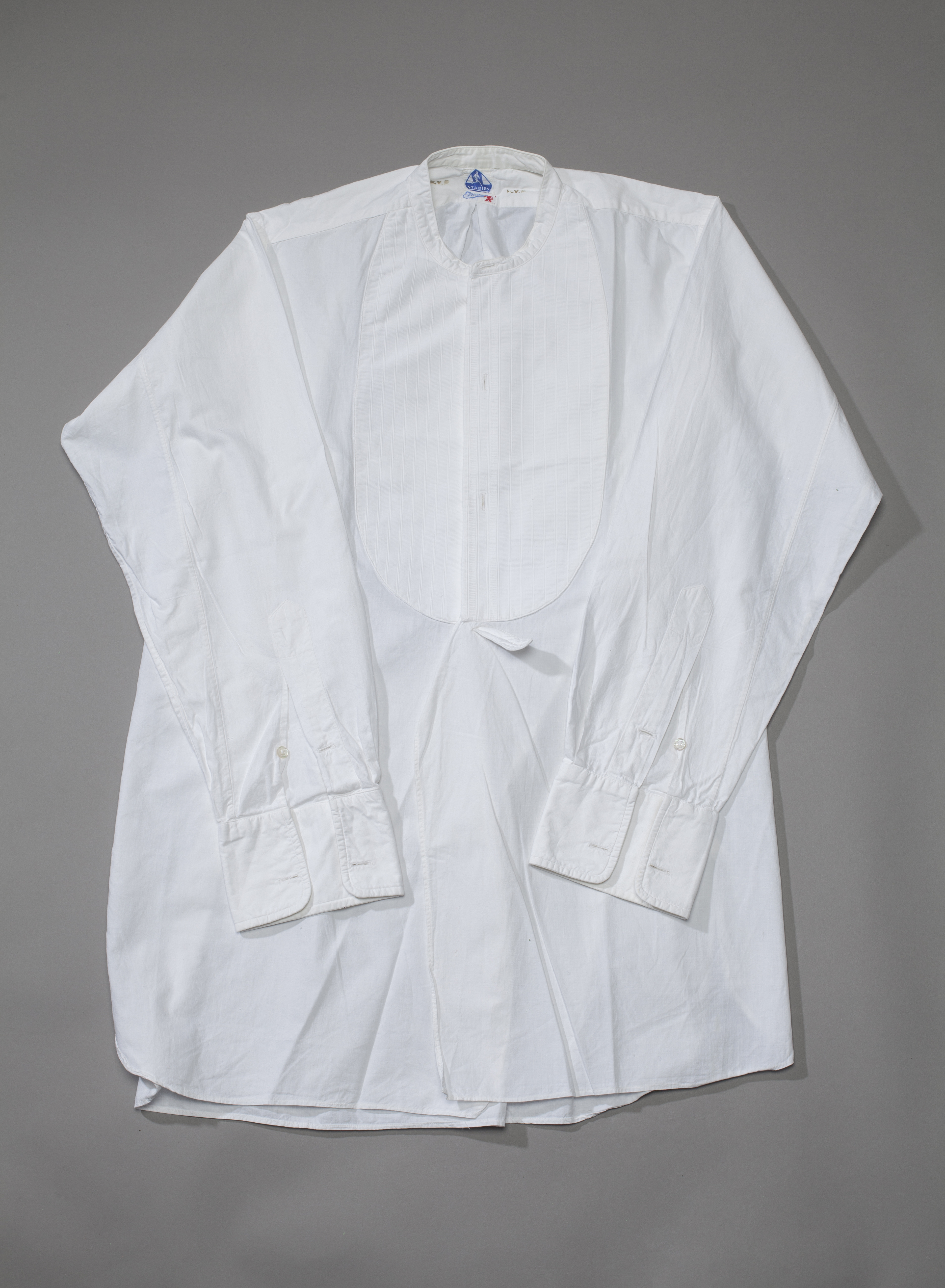Selästä napitettava frakkipaita. Arviolta 1953–1962.