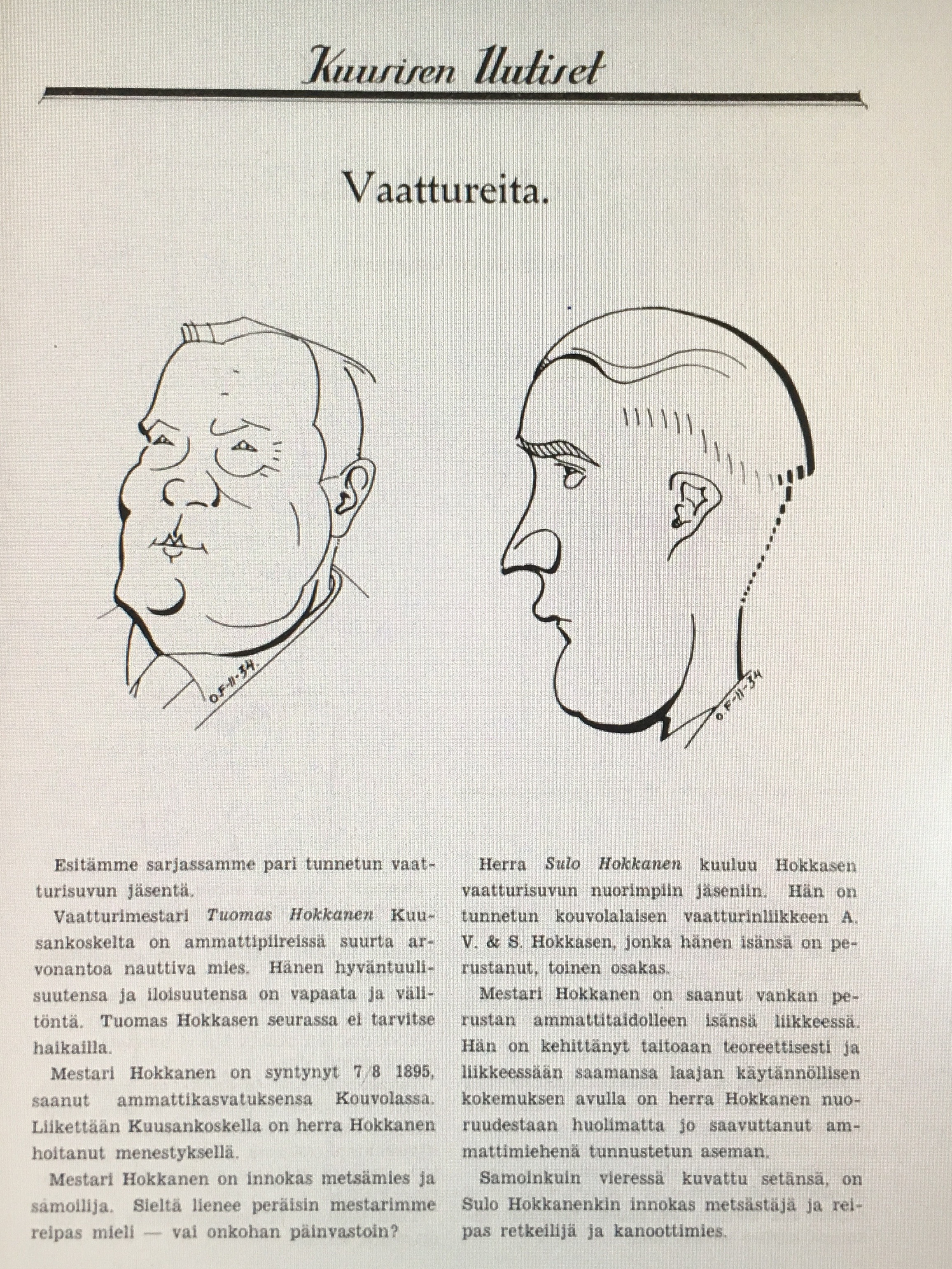 Kirjoitus Vaatturi-lehdessä vuonna 1928 [1]